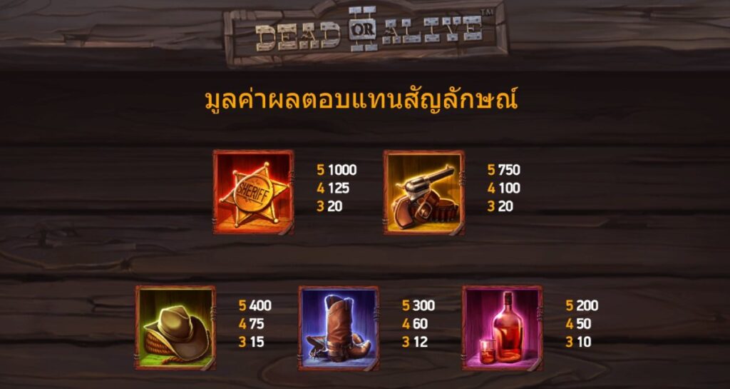 | Wild Outlaws (คาวบอย 5 ตัว) | จ่ายสูงสุด 166x ของเดิมพันรวม |